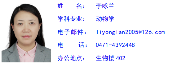 李咏兰,女,汉族,博士,教授。专业型、学术型研究生导师,博士生导师,蒙古国国立教育大学博士生导师。现任教于bat365官方网站。现任中国解剖学会人类学分会副主任,内蒙古解剖学会副理事长,《人类学学报》《解剖学报》编委。主讲“人体及动物生理学”(自治区精品课程负责人)、“高级动物生理学”、“人体组成学”、“生理学研究进展”等课程。主要从事民族学与人类生物学交叉学科研究,采用宏观体质人类学与微观分子遗传学、人类生物学与文化人类学研究相结合的方法,对分布在不同生态环境的各民族进行人类生物学研究。主持完成国家自然科学基金项目3项、科技部基础性工作专项1项,内蒙古自然科学基金项目2项。承担完成国家自然科学基金重点项目1项、国家自然科学基金项目5项、内蒙自然科学基金项目6项。目前正在主持国家重点研发计划战略性科技创新合作项目“人类表型组测量技术及表型数据跨尺度关联合作研究”(2020YFE0201600,167万,2020.6-2024.12)、国家自然科学基金面上项目“基于人体测量与田野调查的西北民族走廊16个族群人体组成成分的研究”(32071183,58万,2021.1-2024.12)。发表学术论文110余篇,其中SCI收录15篇,EI收录5篇。出版学术专著3部。多次获得bat365官方网站优秀硕士生导师称号,指导的本科生、研究生多人获得校级或自治区优秀学位论文。