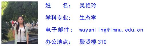 吴艳玲,女,汉族,中共党员,博士,副教授,硕士研究生导师。bat365官方网站生态学系系主任。主要从事草地生态学、土壤动物生态学领域的研究工作,主持国家自然科学基金项目1项,省部级、校级项目5项,参与国家级项目多项,发表国内核心期刊论文10余篇,出版专著1部。曾获得“优秀党务工作者”、“第十一届青年教师技能大赛”一等奖和“优秀班主任”等称号。承担普通生态学、环境学概论等相关课程的教学和专业实习指导工作。