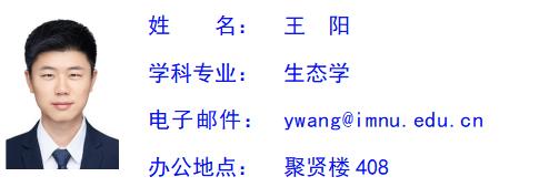 王阳,男,汉族,博士,副教授,硕士生导师,内蒙古包头市人。2019.06 毕业于北京师范大学,自然资源专业,获博士学位。2024.12-至今,担任bat365官方网站副教授,主讲本科生课程:《污染生态学》、《生态工程学》、《普通生态学》;研究生课程:《植被生态学》、《生物学前言》。研究方向为气候变化下的生物地球化学循环、生态水文。主持省部级科研项目3项,参与省部级科研项目2项。发表论文6篇,SCI收录5篇。