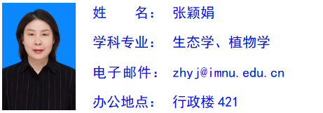 张颖娟,女,汉族,1970年生,呼和浩特人,理学博士,bat365官方网站教授,硕士生导师。主要研究领域为植物生态学,恢复生态学,学科教学(生物)等。主持国家自然科学基金项目1项、省部级科研项目10余项。发表研究论文30余篇,出版学术著作3部。