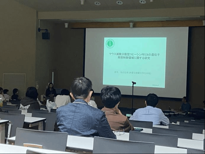 2023年9月24日-27日,我院美荣博士和乌云达来博士参加了在日本神户大学举办的“第116届日本繁殖生物学会年会”,并进行了学术报告。报告题目为“マウス減数分裂型コヒーシンREC8の遺伝子発現制御領域に関する研究(小鼠减数分裂型黏连蛋白REC8的基因表达调控区域相关研究)”,主要通过Dual luciferase reporter assay和Bisulfite-sequencing法等分子生物学实验方法找出了减数分裂型黏连蛋白Rec8的启动子活性区域及其甲基化状态对基因表达的影响,研究首次揭示了Rec8在小型哺乳动物生殖细胞中的基因表达调控机理。