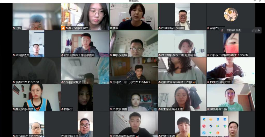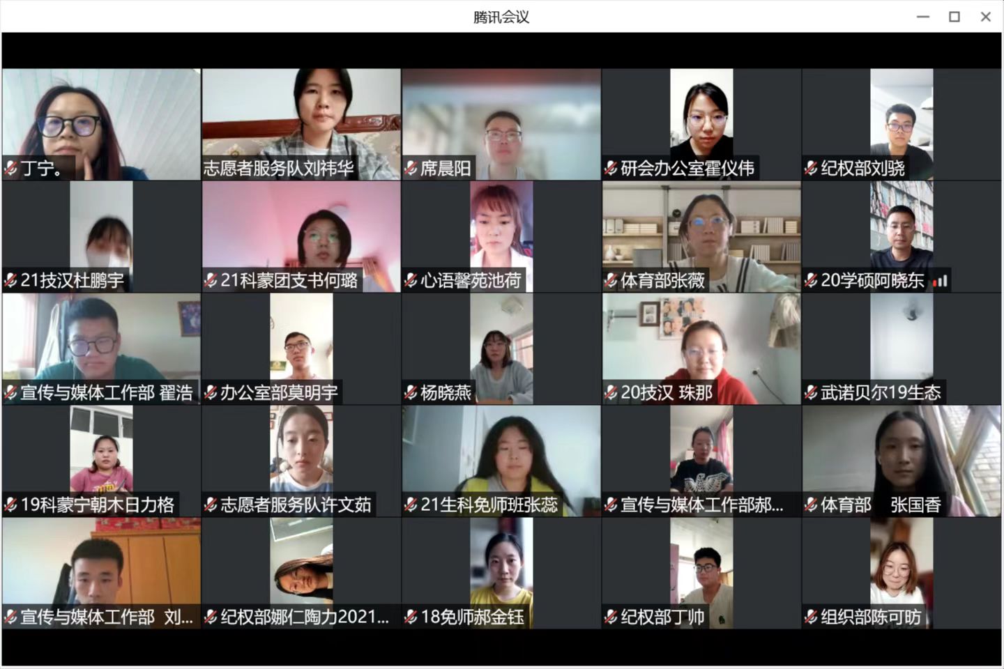 5月20日,bat365官方网站召开了“劳动教育宣传月”活动交流推进会,分为研究生专场和本科生专场分别在线上召开,学就办主任默原老师、团总支副书记李自蹊老师、辅导员胡日查老师出席了会议。在两场会议上,学就办组织学生干部深入学习了习近平总书记在全国教育大会上的讲话精神和自治区相关文件,分别向研究生和本科生学生干部解读了我院《“学生劳动教育宣传月”实施细则》,并就近期我院所开展的“劳动教育宣传月”的活动进展进行了阶段性汇报,并听取了学生会各部门在实施劳动教育宣传活动的工作进展和各班实施劳动教育的典型做法。