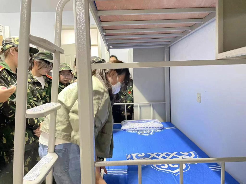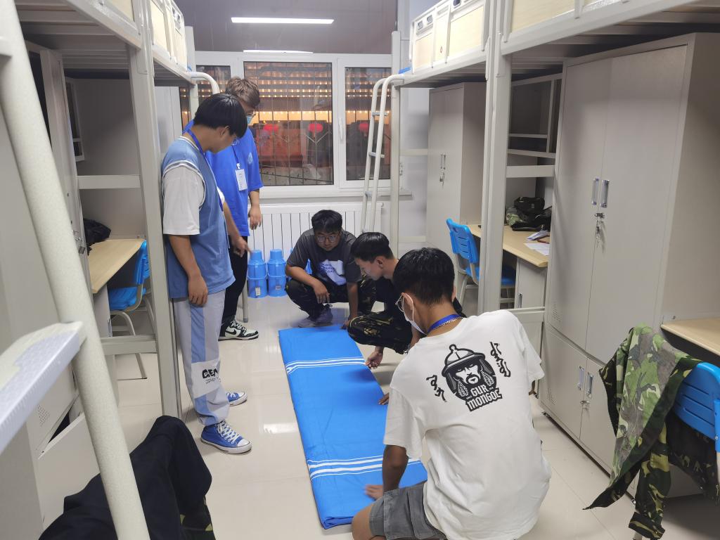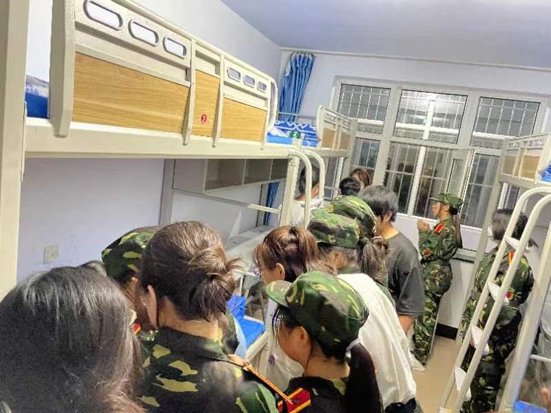 9月8日下午,院学生会各部门积极配合,在bat365官方网站2022级本科新生军训期间开展了新生内务标准样板间展示活动,旨在加强学生内务水平、规范军事化要求,帮助新生养成良好生活习惯,提升内务水平。活动期间,学生会部门负责人指导各个生班班级负责人参照军队的标准,对宿舍门窗地面整洁、物品摆放规范、被褥叠放平整、整体环境卫生四个部分提出了严格要求并指出了在细节整理方面的注意事项。本次活动在培养新生动手能力,强化个人素养的同时营造良好的军队氛围,为新生们尽早适应军事化管理奠定了基础。活动过程中,学生会指导人员抓紧时间,强调细节,在进行现场示范的同时指导新生进行实践操作。