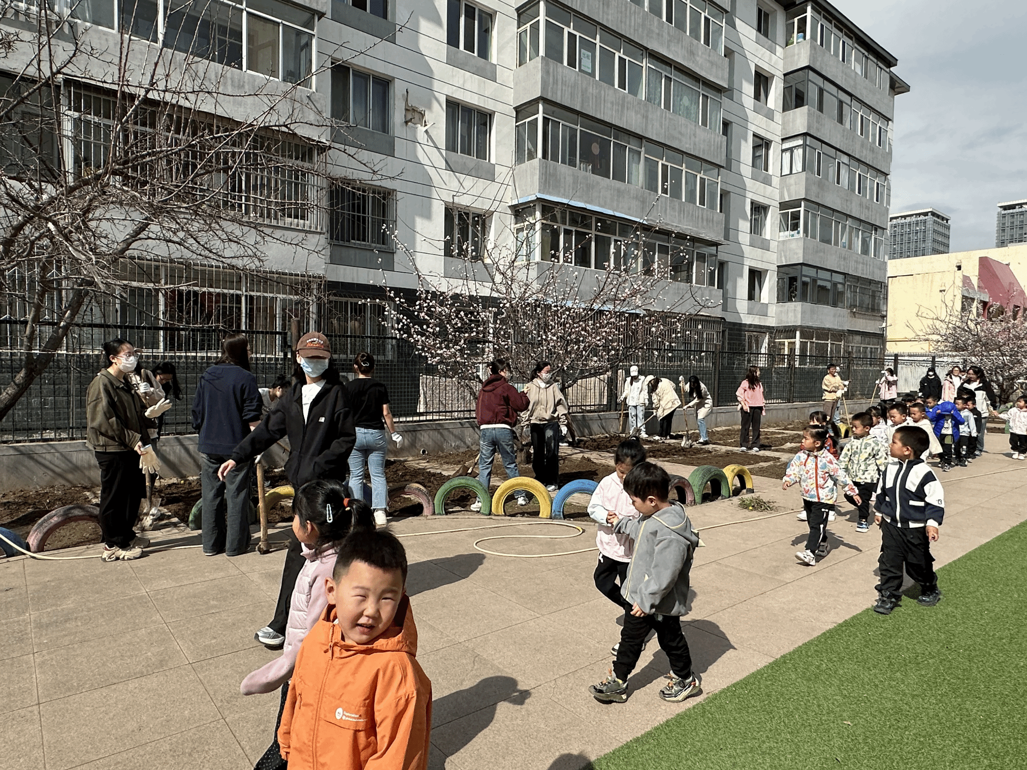 活动当日,研究生党支部与研究生会的志愿者们早早地来到幼儿园,在幼儿园的老师的带领下,志愿者们迅速分组,一部分人负责翻,志愿者们挥汗如雨,手中的铲子不停地翻动着土地,为接下来的种植工作打下了坚实的基础;另一部分人则负责除草,细心地拔除杂草和石头等杂物,确保试验田的整洁。在完成了初期的田间作业后,志愿者们又聚在一起,开始研究设计种植方案。他们结合幼儿园孩子们的年龄特点和兴趣点,精心挑选了适合孩子们种植的蔬菜和花卉,并制定了详细的种植计划并提供给园方。幼儿园的小朋友也自发地为志愿者送上饮用水,暖心的互动,瞬间拉近了彼此的距离,为活动增添了一抹温馨的色彩。