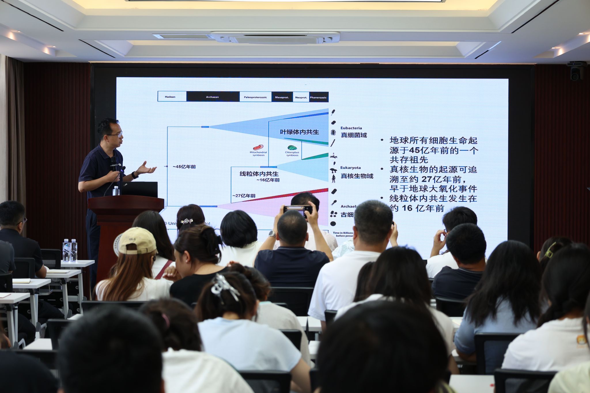 交流会后,两场高水平的学术报告接踵而至,为相关高校学者和我院师生带来了一场学术盛宴,学术报告会由学院党委副书记、副院长高峰主持。王红宁教授作了题为《动物-食品-人重要食源性病原菌整合溯源、精准防控 、交叉耐药、预测预警》的学术报告,深入剖析了该领域的前沿研究与应用前景。毛康珊院长则以《基因组数据爆发加速生命之树研究-以柏科植物为例》为题,系统介绍了在大数据背景下植物系统演化研究的前沿进展,为相关领域的研究提供了新的视角与方法。与会人员围绕报告中的相关议题进行了深入交流,现场学术氛围浓厚。