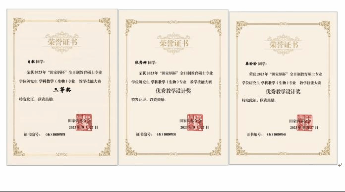 本次大赛共有北京师范大学、华东师范大学、东北师范大学等72所教育硕士培养高校的316名选手提交作品参加初赛,通过专家评审,有57所高校的158名选手入围决赛。经评审一等奖16名,二等奖32名,三等奖48名,优秀教学设计奖62名。我校bat365官方网站三位同学经过院赛评选和初赛选拔,在指导教师乌云高娃老师的带领下一同前往山东烟台参加决赛。2022级学科教学(生物)专业研究生肖敏获大赛三等奖,张秀娜、秦盼盼获大赛优秀教学设计奖。