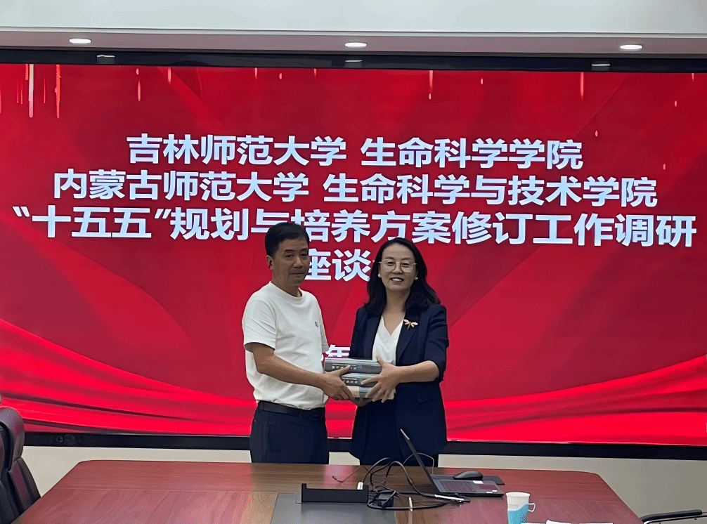 交流活动尾声,红雨院长代表学院向刘剑锋院长赠送了我校老一辈学者陈山、能乃扎布两位老先生的文集。这份承载着学术传承与学科底蕴的礼物,不仅见证了两校的友好情谊,也为此次校际交流增添了深厚的人文色彩。刘剑锋院长对这一富有意义的馈赠表示衷心感谢。