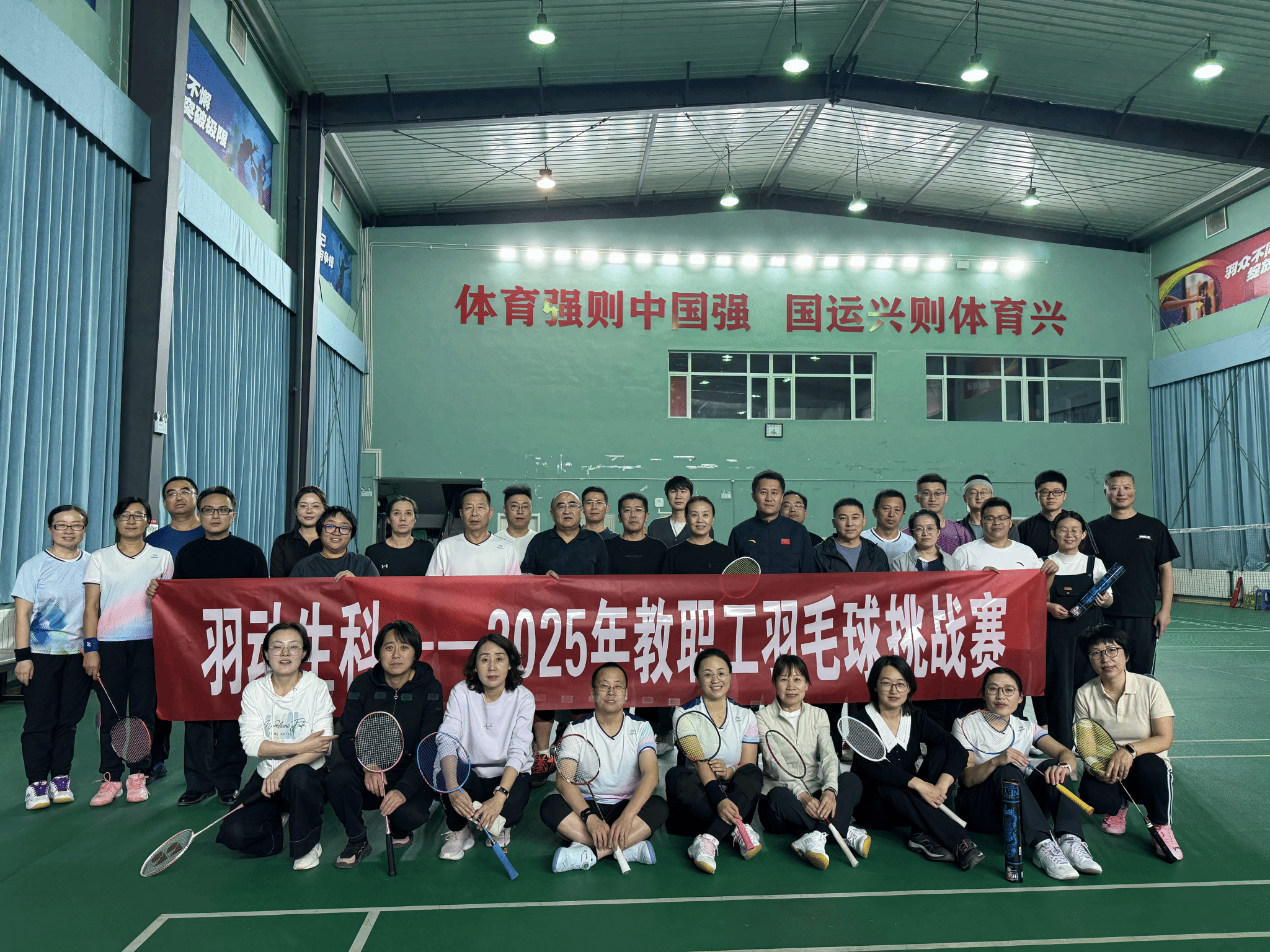 为进一步丰富教职工文体生活,增强团队凝聚力,营造健康、和谐、积极向上的校园文化氛围,11月25日晚,学院举办羽动生科-2025年教职工羽毛球挑战赛。