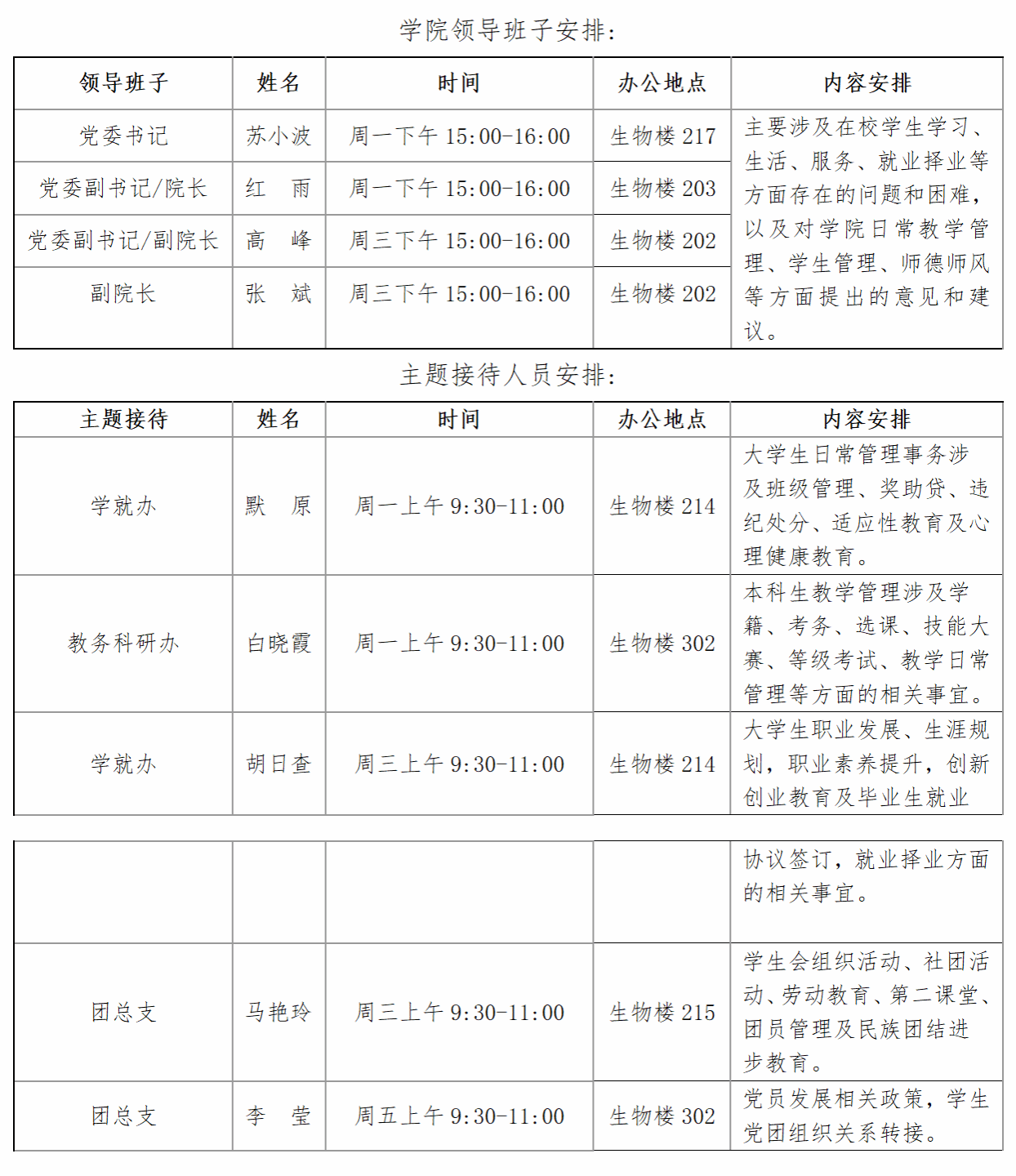 bat365官方网站领导班子成员和主题接待人员(辅导员、本科生教学秘书)。